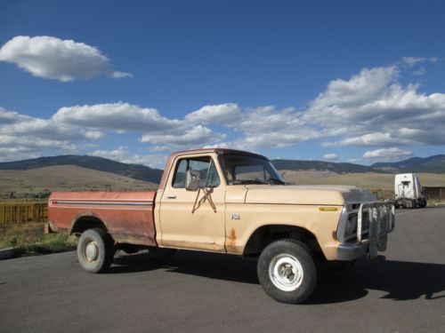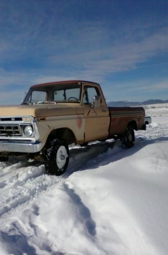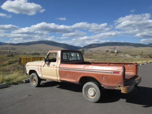 This 4x4 f150 pickup was manufactured by FORD in Nov. 1975. - New / re-manufactured front drive shaft with new spline ,u-joints ,and fresh blue paint. The drive-shaft and 9-inch rear end alone are worth my starting price. Free Storage included for the first 3-months, but after the 90 days passes, if for some reason you are not able to pick it up, please send a reasonable monthly storage in the amount of $35.00 per month. This pickup steers and rides good on the highway. It starts and runs, but will need a 2-barrel carburetor kit which normally costs $18 to $20. It has factory locking hubs. There is fairly typical rust near driver's gas pedal, and passenger outer edge floor cab seams. We unbolted the brush guard off front bumper { see 2nd photo in snow } ,but can load it in the box for you if you want it ? It has high & low range transfer case, low range first gear, solid axle front differential with large factory coil front springs. Also, a clear title.