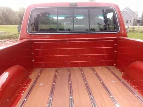 THE EXTERIOR-BODY ,CAB AND BED WERE COMPLETELY DISASSEMBLED AND SANDBLASTED. PAINT IS COPPERHEAD PEARL METALLIC ALONG WITH THE HOODS BOTTOM SIDE. NEW DOORS AND REAR FENDERS. BED HAS A NEW NATURALLY FINISHED EPIE WOOD FLOOR WITH STAINLESS STEEL BARS. NEW GLASS AND RUBBER SURROUND THROUGHOUT.