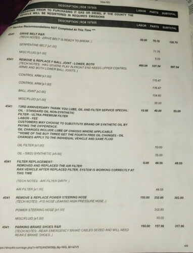 Have a "punch list" from a mechanic who reviewed the truck (see photos).