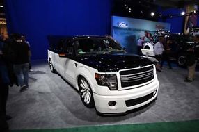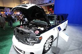 Body; Shaved door handles, shaved antennae, Ford Oval frenched in top of grill surround, custom grill center with mesh, Striker Trucks ram air functional hood, Striker Trucks front Fascia and splitter, One-off fender vents done as Fatal “F” logo. Striker Trucks lower side rockers and rear bumper diffusers. Gaylord’s Bed lid, Custom Headlight paint work, Recon Tail lights,