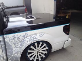 Inside Bed; (2) 12” Rockford Fosgate sub woofers, Amps, and M282w tower speakers. Air Ride Tech “Air-Pod” Skate board decks mounted on custom stands, Maple wood flooring.