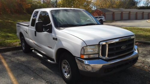 F-250 Super Duty: Diesel Extended Cab. Body and chassis sytem are in good condition. Front seat (middle part) is missing fabric on the back. Bed liner and flat bed topper, trailer package, plow package