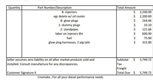 2004 F250 FX4 Lariet Package 216k. 8 Brand New Injectors, 8 brand new glow plugs, 2 new stand pipes, new pig tails, New Oil Cooler, EGR Delete that has actually been done right all in May 2017. All paperwork showing work was actually done by Professional Diesel Shop. CNsmoke Diesel. 20" Moto Metal Wheels and Mickey Thompson Tires. New Alternator June 30, 2017. Recent Brakes