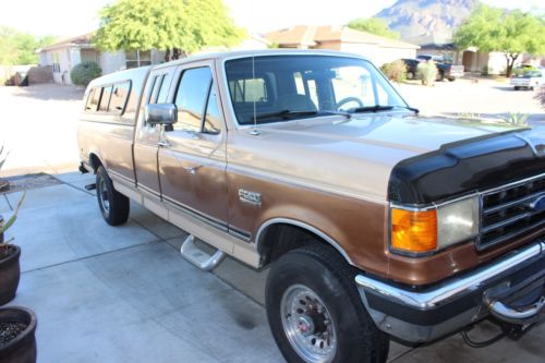 YOU ARE VIEWING A PRESTINE 91 F 250 LTX EXTENDED CAB 4X4 RUST FREE TRUCK WITH ONLY 59,600 VERIFIABLE ORIGINAL MILES. ALWAYS SENIOR OWNED AND DRIVEN. THIS VEHICLE HAS PW;PB;PS;AT;ANTILOCK BRAKES; NO DENTS; NO DASH LIGHTS ON; TRANSMISSION SHIFT SMOOTH; NO BODY DENTS OR REAR CARGO DENTS; ORIGINAL PAINT GOOD CONDITION; $3000 DOLLAR LEER CAMPER SHELL; ENGINE RUNS AMAZING; AC BLOW ICE COLD; DULE GAS TANKS; INTERIOR LIKE NEW/ NO RIPS TEARS, ETC; FACTORY HITCH; LONGBED; REAR CAB SEATING; CURRENT SMOG GOOD; THIS TRUCK IS IN EXCELLENT CONDITION FOR ITS AGE; IT HAS RECENTLY BEEN GONE THOUGH AND THE STARTER MOTOR; ALTERNATOR; WATER PUMP; FAN CLUTCH; BELTS; HOSES; THERMOSTAT; SAFETY NEUTRAL SWITCH; BATTERY; HAVE ALL BEEN REPLACED. DRIVE IT ANYWHERE..THIS VEHICLE IS BEING SOLD AS IS, WHERE IS, NO WARRANTIES IMPLIED NOR GIVEN
