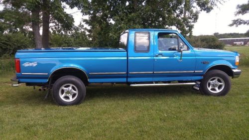460 Engine Automatic Transmission with overdrive. 4x4 XLT Longbed Extended Cab. I purchased it from the first owner that took extreme care of it. Never drove off main highways or in winter months. This truck always spent it's time in the garage all of it's life. I've never drove in winter or bad weather. It has never seen a hard day in it's life as seen by the pictures. This truck has had extremely high care. Manual locking hubs, duel fuel tanks, air conditioning, power windows, power locks, cruise control, tilt wheel, intermediate wipers. Still has factory windshield with the UAW Logo from factory. Assembled in Kansas City Plant. It has a box cover you can easily take off. Original AM/FM stereo with cassette player. The interior is gray with Captains chars. Has center storage and cup holders. The interior is clean, like brand new, no stains or rips. Smoke free, no pets. This truck is nearly flawless. It has never been in an accident. All original paint. No dents. This truck is all factory except the wheels. 80% tread left. Oil is changed every 3,000 miles. Rust free body. No cracks in dash. Upholstery is clean with no fading. A/C blows cold. All Power equipment works as should. If you can see this in person you would be amazed. I have the factory original window sticker!