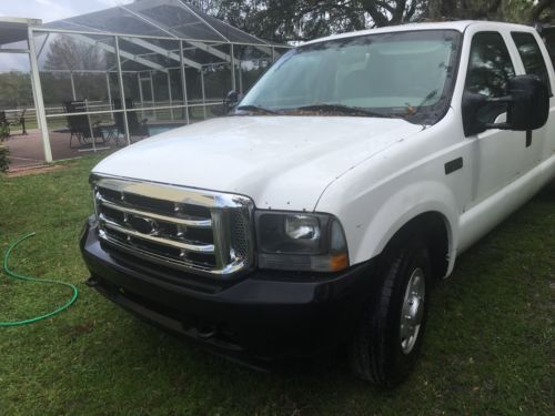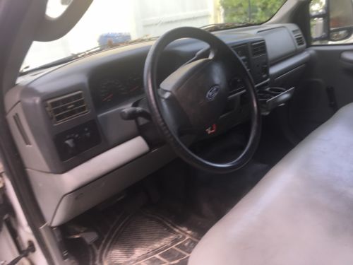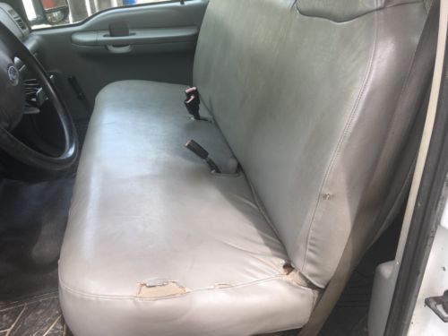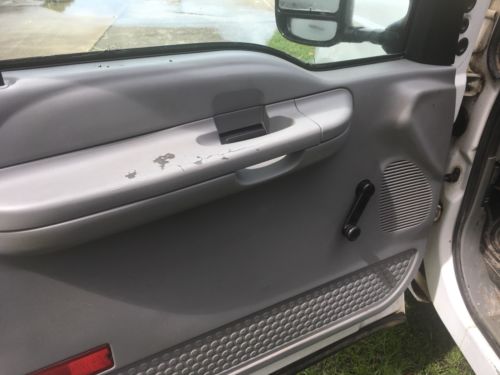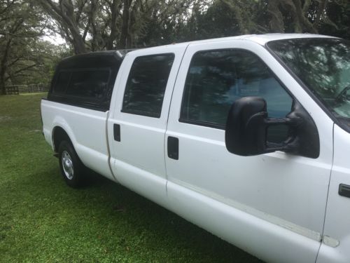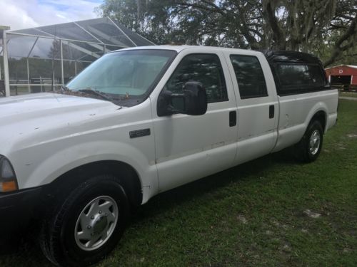 2003 Ford F250 5.4 L automatic 243,000 miles 2 Wheel drive 4door older work truck . Fleet white with nicks and dings on it no rust very solid overall . AC works well . I've had it for about a year or so and use it for picking up payroll running to Home Depot . It has an 8 foot bed. With a welded hitch in the bed . Large dent in the tailgate . New taillights and grill . Tires are OK/fair . Interior is OK/fair. Headliner and interior is a little dirty because it's old work truck. it runs and drives good. It does have an engine light on it's been that way for a year I believe it's a sensor . The shifter lever indicator does not work. I do not have the key that fits the door locks properly . They do lock in work fine. But I don't have the key. I have a 7 foot black topper on it right now, it comes free with the truck .The title is clear . Good overall work truck or Home Depot truck good luck bidding .