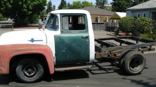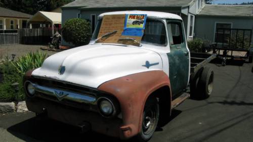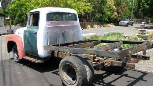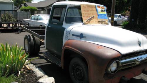 Up for your consideration is a 1956 Ford F250/350 Flat bed Dually, running 272 HD Y - Block with 4 Speed Syncro floor shift Transmission This has a working PTO on the trans, and has a floor pull E Brake,