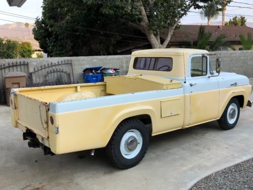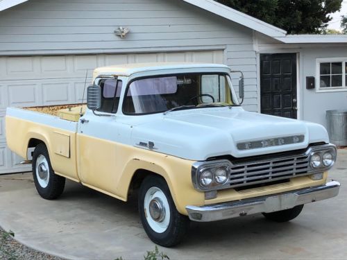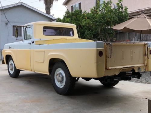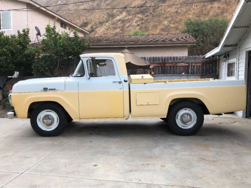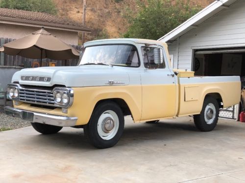 For sale is one 1959 ford f250 pickup. This truck was a daily driver. Runs well although could use another valve adjustment in addition to the one it received after heads were rebuilt in Northridge, CA a few years ago. I replaced the radiator a few years and about two thousand miles ago. I recently attached a receiver to pull a horse trailer around to train a horse. However, the receiver frame MUST be welded to the truck frame for on-road use