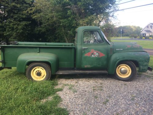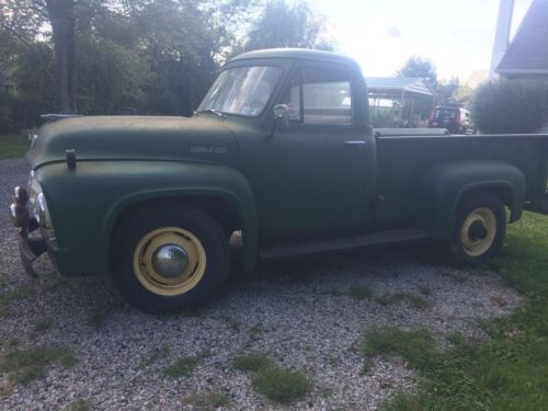 For sale is a 1953 Ford F250 50th anniversary. The truck was owned by a welding company (you can see the old logo I found under the green paint on the door) and was garage kept all its life. The truck has a few small rust holes at the bottom of one of the front fenders and surface rust. Otherwise, the truck is all steel with no Bondo or filler. Other than a few small dents on the inner fender wells the bed is completely straight. The bed is in great shape. All lights and gauges work. The previous owner (who was a friend of the family) had the engine and transmission rebuilt and a new Dana60 rear axle installed. The truck has surface rust underneath on the frame and inner fender wells but no rot. The truck also has a PTO on the transmission for running welders and generators, etc. The tires have about 95% tread left. The truck has sat for 2 years although it runs and drives. There are only 33,500 original miles on it. It will need a tune up and brake drums sanded. We have the original bill of sale from 1953. This truck is truly a barn find and is a real time capsule. Excellent for a weekend fixer upper or father/son project. In a very short time, you can have it on the road and ready for car shows and cruise nights!
