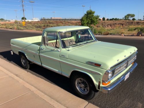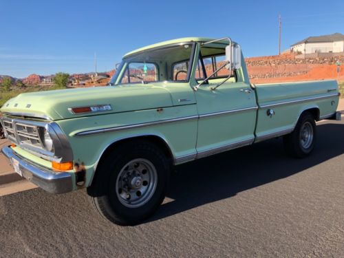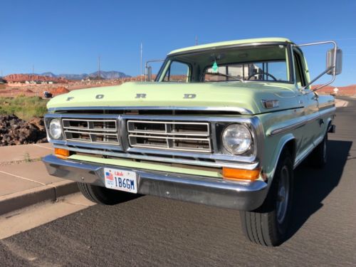 Here we have a 1972 Ford F-250 Camper Special Sport Custom 3/4 Ton 2wd 360 v8 truck. Awesome survivor! When I bought was told has 52k mikes as that’s what odometer says. It could be 152k miles but I would agree with the gentleman who had before me. Good shape for year 98% original. New tires, just over 1k mikes on them. New Valve cover gaskets ,Updated Aluminum Radiator “Does not over heat” Rare Power steering, All original exhaust purs like a kitten, New grease in all joints,Has the Extra backup gas tank “ second tank I’ve never tested or used but was told works, Has the” Rear slide window” RARE most have flat non opening window. The windshield has a minor crack under wiper. Unnoticeable and doesn’t affect viewing. Wipers and fluid works great . All original GLASS. All lights,blinkers work fantastic. Very good brakes stops on a dime! Engine and tranny are awesome running! Minor rust on panels are through needs attention also in bed mostly surface rust but does have a couple tiny holes near tire gaurd . Otherwise underside not a lot of rust in good shape! No rust eating through on bottom!! No rusty floor boards!! Very little rust all around but does have minor surface rust here and there. Very minor!! Minor wear and tear not bad at all!!! No AC was installed by Ford. Has the original black leather seat under cover that does have a couple cracks in seat needs attention otherwise seat is nice shape. Missing original stereo. Was leaking oil but just fixed that issue with new valve cover gaskets. Has a little dent on driver door from mirror being bumped into. Also on passenger side on the middle chrome trim has a little dent. Very minor! Otherwise A great truck and is a eye catcher get people wanting to buy everyday so figured would list and see what happens. !! Very reliable everything works!!. If any questions please feel free. Selling as is and Only local pickup. If you need car delivered to you please have that taken care of and I’ll see it off. I’m in southern Utah. If you lived within 400 miles I would say this Will easily make it! I made a 300 mile trip riding mostly 75 cruisin when I bought it. Very reliable and comfortable. Thanks for your time
