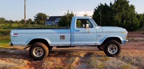 1974 Ford F250 Ranger. This truck is known as the "Highboy". (With 1979 front clip) 4WD 390 cubic inch V-8. C6 Automatic transmission. Air Conditioning, aftermarket CD radio. Manual locking hubs. This truck is tagged and runs/drives. Power assist steering (needs some work). 390 cubic inch V-8,