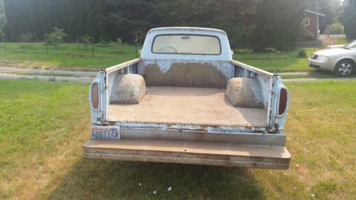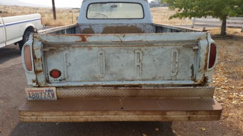 The original owner whom I bought this truck from had his auto shop class paint this Holley dark green pickup a baby blue color. He replaced the column 3 speed with a floor 4 speed. I have replaced the single barrel Holley carburetor with a rebuilt one, new fuel pump and filter along with a complete tune-up kit and oil change. I would recommend that the fuel tank be removed and cleaned at some point. I also replaced the rear tail light bulbs and lenses. Truck starts, runs and drives. It has a small brake fluid leak coming from the left rear brake cylinder. All glass is good except the rear window which is cracked. All doors open and close correctly which is very rare on these unibody models due to someone over loading the bed and thus creating the cab to get tweaked. Windows and door handle work correctly. Original tailgate and cigarette lighter. Truck has surface rust only and is very solid. The bench seat needs to be reupholstered. Engine is a 223 cu.in. producing 114 hp Wheel base is 122". GVW is 7400 lbs Truck was built is San Jose, CA and sold new here in the high desert area of eastern Washington stateYakima. Clear title in my name.