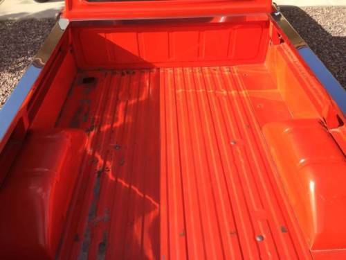Amazing Original Truck! I acquired this truck from a gentleman who purchased it from an Estate sale. The Truck was in with the original family where it sat for 25. After the Husband passed away, the wife would not part with it until she passed away. The Title when I purchased it said 7 thousand Actual miles. The Truck was not running, so the gentleman I purchased it from got the truck running, He rebuilt the carb and cleaned the fuel tank, and such. But when I drove it, the truck lacked power with the single barrel carb. So I took the Truck to fast Guppys Speed Shop and spent thousands of dollars to get the truck going right, We updated the Intake manifold with an Aluminum Offenhauser, and put a Fitech EFI system on. While the Exhaust manifold was off I had it Ceramic coated, and then a complete new Exhaust system with a Magnaflow muffler. I then upgraded the headlights to LED, had the valve cover powder coated as well as the air filter powder coated. I noticed the brake master cylinder was leaking,(probably from sitting over the years) so had the brake lines flushed and a new Wilwood Master cylinder installed. The put band new Cooper ties on the truck and a rubber mat in the tuck bed. Everything works, including the original in dash AM radio. I had a hard time believing the truck had the original paint so I took it to a body shop and had them look, after crawling all over the truck inside and out. We both agreed that it had to be original. Every part I have taken off the truck I have kept, incase you wanted to switch it back. The truck goes right down the road at 70MPH smooth as can be. If you have any questions please feel free to ask.