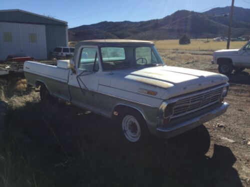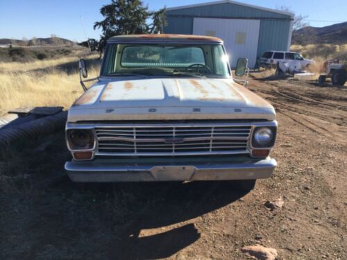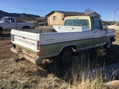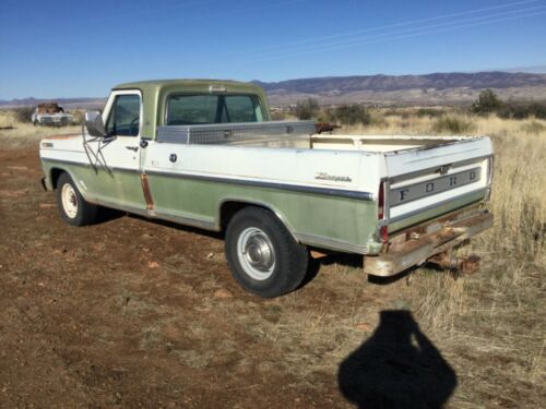 This is a 1969 Ford F-250 Ranger. It is an original rust-free Arizona truck. It features a 390 c.i.d. engine and automatic transmission. It needs a new ignition switch, but it runs with a battery and by jumping the starter solenoid. The front brakes have all new parts but need to be bled. The truck comes with a $350 aluminum diamond plate tool box. The truck will need to be towed.