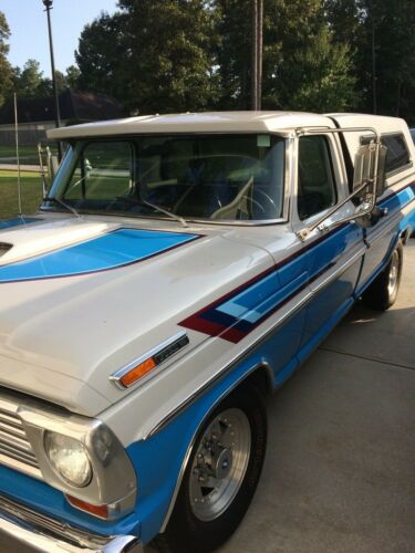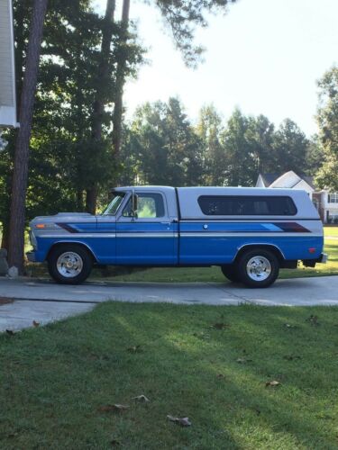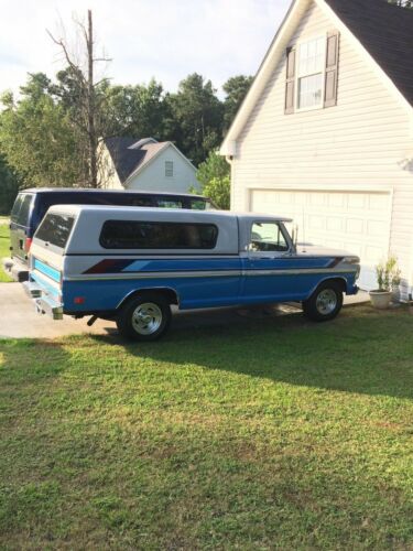 1968 FORD F 250 LONGBED CUSTOM PAINT, CAMPER CAP, BED CUSTOM PAINTED .BUMPERS REPLACED, INTERIOR REDONE SEAT REDONE,AND FLOOR MAT REDONE, DASH PAD REPLACED, WHETHER STRIPPING REPLACED, INTERIOR REPAINTED AS WELL. AFTER MARKET GUAGES WITH TACH , ENGINE 360/390 FE REBUILT. HAS ABOUT 22,400 ON MOTOR, C6 AUTO TRANSMISSION REBUILT HAS ABOUT 1,000 MILES ON IT.. SPEEDO WAS RESET WHEN MOTOR WAS REBUILT BY PREVIOUS OWNER. ACTUAL MILAGE IS UNKNOWN. EDELBROCK INTAKE AND CARB, DUI DISTRIBUTOR NEW COIL NEW MODULE NEW CAP WIRES PLUGS. RUNS STRONG. DUEL FUEL TANKS REAR TANK REMOVED AND BOILED OUT AND SEALED AND PAINTED. FRONT TANK REPLACED, NEW 3 ROW RADIATOR. AFTERMARKET WHEELS WITH MICHELIN TIRES HAVE APX 3000 MILES ON THEM. FACTORY CORRECT WEST COAST MIRRORS. I HAVE RECEIPTS FOR MUCH OF THE WORK. GUAGES WORK DASH TEMP GAUGE NOT HOOKED ALL UNDER DASH WORK, ALL LIGHTS WORK, WIPERS WORK. TACH AND SPEEDO WORK .TRUCK HAS POWER DOOR LOCKS AND ALARM NEEDS NEW KEYBOB..DOOR TAG LISTS THE REAR AS POSI 3:73 THE BAD SMALL SPOT OF PAINT PEELING BY FRONT TANK FROM A GAS SPILL. P/S DOOR IS BUBBLING AT THE BOTTOM, SEE LAST PHOTO BUBBLES ARE AT THE VERY BOTTOM D/S DOOR HAS A BUBBLE THE SIZE OF A QUATER HALF DOLLAR. THE REST OF THE TRUCK IS ROCK SOLID. MASTER CYLINDER IS STARTING TO FADE. SMALL 1/2 INCH LINE IN WINDSHIELD NOT INTERESTED IN ANY TRADES AT THIS TIME. RUBBER MAT IN TRUCK BED NOT INCLUDED IN SALE OF TRUCK. THIS TRUCK IS FOR SALE WHERE IS AS IS NO WARRANTEE ON THE TRUCK. SHIPPING IS THE RESPONSIBILITY OF THE NEW OWNER. I FEEL THE RESERVE IS FAIR FOR THE TRUCK PLEASE DONT ASK. COME SEE THE TRUCK YOU WONT BE DISAPPOINTED PLEASE ASK QUESTIONS I AM SURE I FORGOT SOMETHING. I DRIVE THIS TRUCK ALMOST AS A DAILY DRIVE WHEN THE WEATHER PERMITS OPEN TO A REALISTIC OFFER .