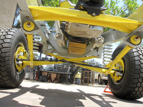 The complete chassis and suspension has been chemically stripped and professionally powder coated: chassis, frame, inner fenders, springs, rear axle and core support.