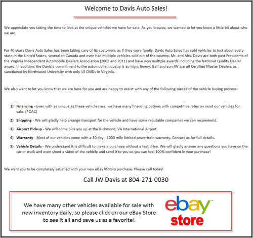 In 1976, Davis Auto Sales opened in the southern part of Chesterfield County branching off from the already existing Davis Auto Repair family run business which was started in the early 1950’s by TL Davis, Jr. Jimmy Davis, always a mechanical handyman, saw a way to buy and repair vehicles in his spare time to make extra money. Always tinkering, his passion became a business. Instead of doing things against the rules, as many today still do, he made it legal -- got the licensing needed and Davis Auto Sales was born. Mr.Davis was running the show by day and Gail Davis (wife) was handling the books at night, while still working in a corporate career. Being in a rural area, the business had small beginnings specializing in trucks, 4x4 vehicles, some large sedans, and station wagons. As the times changed, and the localized community that traveled on the rural Woodpecker Road location branched out, it was time to look for a more visible location.
