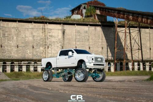 2.5 King coilovers with chrome springs and 2.5 King chrome triple bypass shocks were placed at every corner to maintain a great ride with this large of a lift. The front drag link and trac bar were also chromed and a PSC hyrdo assist steering system was put into place to be able to turn the massive forged 30x16 Specialty forged wheels that are polished lips with brushed faces and floating caps. The monster wheels were then wrapped in 42x16.50r30 Fury tires that ride incredible for their size.