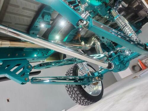 The truck was bone stock until about 12k miles then it was completely dissembled all the way to the bare frame and a custom sheet metal lift was built with a 4link in the front and triangulated 4 link in the rear. Then the entire lift along with the frame was sanded smooth and powdered coated Jamaican teal.