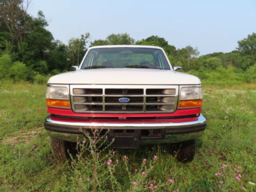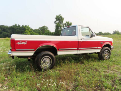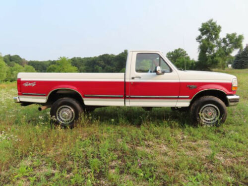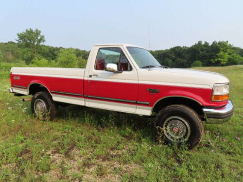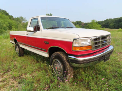 This 1-Owner 1994 Ford F-250 XL 4x4 is a regular cab long-bed pickup that is finished in White/Red over red cloth and powered by a 7.3-liter turbodiesel V8 mated to a five-speed manual transmission with a dual-range transfer case. Features include dual fuel tanks , lockable front hubs, power accessories, a hitch receiver, sliding rear window, factory stereo, a 2″ lifted suspension, and air conditioning.
