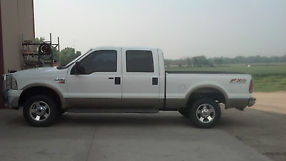 White 2005 Ford f250 has a 5.9 liter Cummins diesel motor. NV 4500 5 Speed manual. Does have a small dent in left rear of box under taillight. FX4 package has leather seats , after market radio, four wheel drive works great, just replaced water pump, tires have 70 percent tread. Has a grill guard. the driver side seat has a cover. 20 mpg on highway..Recent injection pump work and has new injectors with 2200 miles. oil change done regularly with synthetic. Has pillar gauges that read water temp, exhaust temp and the boost!We love this pickup but need the money!!Crew cab pickup all windows work and locks.AC needs recharged. Heater works good. Has a new clutch.