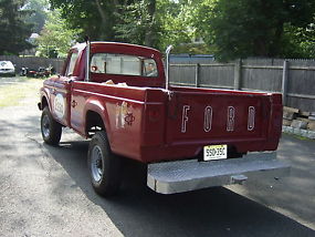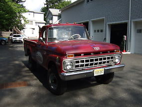 1965 FORD F250 4X4 IN GOOD SHAPE FOR ITS AGE. I OWNED THE TRUCK ABOUT 10 YEARS AND ALLWAYS KEPT IT IN MY GARAGE. EVERY THING WORKS IN THE TRUCK. I CHANGED THE CARB, RADIATOR, MUFFLERS, BRAKES AND TUNE UP WHEN I BOUGHT IT. THE TRUCK RUNS GOOD ALLWAYS STARTS RIGHT UP EVEN AFTER SITTING. SOME RUST UNDER THE TRUCK AND AROUND THE BODY IN SPOTS. THE TRUCK WAS A ROAD SERVICE TRUCK YEARS AGO STILL HAS THE COMPRESSOR HOOKED UP AND WORKS FINE. I DONT HAVE ROOM FOR THE TRUCK ANYMORE.TRUCK GETS ALOT OF ATTENTION AT THE SHOWS ! BRINGS ALOT OF PEOPLE BACK TO THE ESSO DAYS.TRUCK ALSO HAS CHROME STACKS IN BED OF TRUCK BEHIND CAB AND GAS TANK WAS REMOVED AND PUT UNDER TRUCK IN REAR. IF YOU HAVE ANY QUESTIONS CALL ME. THANKS, JOE 973-738-6918