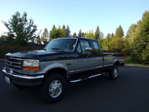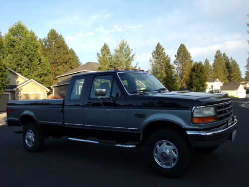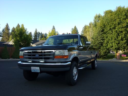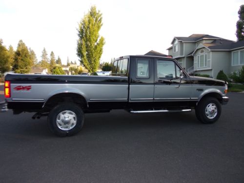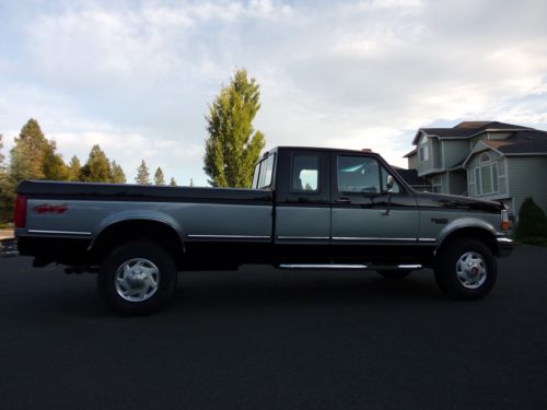 SELLING WITH NO RESERVE !!!!!!!!!! IS THIS ABSOLUTELY GORGEOUS 1 FAMILY OWNED 1994 FORD F-250 HD WITH 67K ACTRUAL MILES EXTCAB LONG BOX 7.5L GAS ENGINE . THIS IS A FACTORY TWO TONE BLACK AND SILVER TRUCK.THIS TRUCK HAS LOCKING HUBS 4X4 WORKS GREAT.IT RUNS AND DRIVES PERFECT SHIFTS SMOTHLY THRU ALL THE GEARS.THIS MODLE IS THE XLT HAS ALL THE POWER OPTIONS AVAIBLE A/C BLOWS COLD ALSO HAS POWER SEAT AS YOU CAN SEE IN THE PICS BELOW.ALSO HAS A FACTORY FORD BED LINER SINCE IT WAS NEW INSIDE IT. THE BED UNDERNETH THE LINER IS PERFECT THERE IS NO WAFFELS IN THE BED ITS IN GREAT SHAPE.THE TIRES ARE 85% ON TRED THE BATTERYS ARE LESS THEN 2YRS OLD.IT IS 100% RUST FREE THIS IS A VERY WELL KEPT TRUCK IT WAS MAINTENANCE EVERY 2500 MILES.IF YOU HAVE ANY QUISTIONS PLEASE CALL ME 509-768-0367 IF YOU ARE A OUT OF STATE BUYER I CAN PICK YOU UP FROM SPOKANE INTERNATINAL AIRPORT.IF YOU HAVE A ZERO FEEDBACK PLEASE CALL FIRST BEFOR BIDING I HAVE THE RIGHT TO KICK BIDERS WITH A ZERO FEED BACK THANK YOU if you need more pics I can email them to you