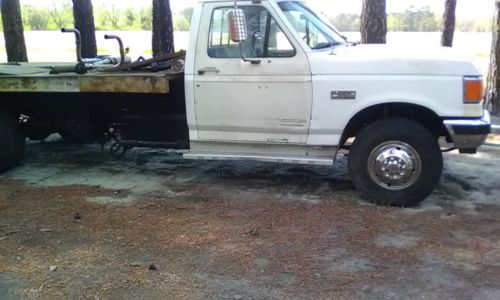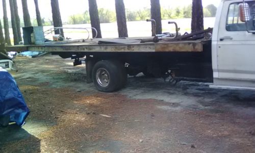i bought this 1990 Ford F-350 rollback over the winter . Well I have since struggled to get down to Clio, South Carolina and pick the truck up . I have the title which I will mail out to you as soon as the truck is paid for . I will include a tracking number on that title that is mailed out . The truck has a nice flatbed that runs off a small gas engine behind the cab ( that gas engine 5hp runs the hydraulics ) . I was going to put a 6 cylinder 300 ford and automatic in it from a 1990s truck . Reliable and Torquey. The body of this truck is solid and so is the rollback . Really drop in a engine and trans and get it on the road . It’ll make someone a good solid cheap rollback with some work . You must pick this truck up in Clio South Carolina . Bring a come-a-long or winch . Checks must clear before truck is picked up . PayPal is fine but you pay the 3% usage fee. Ask any questions I think that for $1000 a guy could find a motor trans and install it in a weekend and have a cheap solid rollback