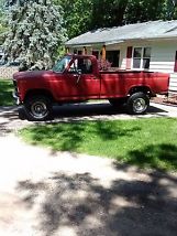 This is a decent, solid truck I bought from a guy who had it in his barn in Illinois. I'm told the truck was from Oklahoma, that is why it is in decent condition, and the faded paint. A previous owned put a 3" body lift on it, home made, and put an after market gauge cluster dash in it, see photo. The speedo doesn't work because the cable is missing, found on line for $40, and the fuel gauge is inop. The gauge does move a little when the key is turned on but that is it. I called Jeg's and was told the gauge is probably the wrong one for the sender, wrong ohm resistance. The rest of the gauges do work, along with all the lights on the truck. I trailered it home and have only driven it around the block a few times so I can't say how it is at highway speeds. The motor has about 90000 miles on it and is strong, no smoke or noise, truck miles unknown. The C6 trans shifts good too. Has lock out hubs, 4WD works. It's a good truck that needs some TLC and minor repairs. Priced to sell with a low reserve.
