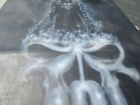 Custom billet spikes thruout the truck both inside and outside. Custom logo on the dash, headlights and taillights. Custom mural on bed cover as well as custom skull graphics on outside, door jambs and even the floor of the cab. This truck was a base model with no power windows, tilt or A/C, but an aftermarket A/C unit has been installed. Super fast airbag system. On board compressor and tank. Custom wheels and a VERY cool Tailgunner exhaust tips that rotate when running. There is much, much more on this amazing truck. Has been built for a number of years, so there is a few rock chips here and there, and a few minor things, but nothing major at all. One bag has a small leak. It does need just a bit of TLC, but you won't be disappointed! It was delivered to California last month, but has a straight exhaust which sounds amazing, but is not smog legal here, as well as needing the original air cleaner. Runs awesome! Please email any questions you may have, and I will do my best to get the answers. Clean and clear Louisiana title. VERY low reserve for a truck this wild! Tons of money invested! Truck is located in North San Diego, Ca.