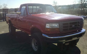 1995 Ford F350 4X4. Purchased this truck from the original owner in June of 1996. Has been used as a landscape work truck and plow truck for approximately 7 years. After that it remained in our fleet as a spare vehicle and has seen little use. Has always been stored inside our shop. This is why the body is in such good shape with no replacement panels, accidents, or paint work in its history. We pride ourselves on maintaining our equipment as best as we can and that is evident here. All maintenance is done in our shop, oil at every 3,000. Looking back at our records, we did have the transmission rebuilt in July of 2002. All mechanicals work great in this truck from engine, transmission, 4 wheel drive, brakes, steering, etc. Tires are 33X12.5x16.5 BFGoodrich All terrains and are in excellent condition. The transmission is a 3 speed automatic without overdrive, a real workhorse. The bed does has a bed liner in it, and there is a sliding rear window.