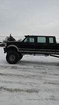 I have a custom built 1994 F 350 extended crew cab 4x4 7.3 Power Stroke diesel. 21 inches of lift which rides on air, 42" super swampers. Rock ram, 5/16 thick front diff. cover, 513 gears, hydro boost from an F 450, 2001 Super duty big turbo and air charge cooler. 3k miles on E4OD trans with billet triple disk converter. 120 MPH Ford lightning speedometer that reads 150k. Key less entry, train horn.