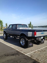 This Truck started out a very clean well cared for truck before undergoing a Complete Custom Overhaul. Truck has New Paint with Mitch Kim and Jason from Garage 31 Accents. The front stock Dana 60 was replaced with a Dana 60 Trunion Bearing front end with 4.88 Gears with a complete rebuild. The rear end is the Original 10.25 that has also been completely rebuilt with 4.88 Gears. The Motor was freshened up with Rebuilt Turbo and New Pedestal and Down Pipes. New Injectors, Glow Plugs and Harnesses were also added. The Transmission was Rebuilt as well. American Force 10 Lug Adapters were added to accommodate The Polished Aluminum Freightliner Wheels and Toyo 22.5 Tires, which give The Truck a Massive and Respectable Look. Custom Designed Side Steps were Built and Powder Coated to Enhance the Look and Entry. A Custom Rear Bumper with hidden rear Winch Mount and Custom Mud Flaps give the back of The Truck a Great Look. Let's Not Forget the Custom Dual Exhaust System with a Diamond Eye Muffler. The Front of The Truck includes a Chrome Warn Enforcer Bumper with a New 9000lb Warn Winch. The Truck sits on a 8" Total Lift with Shackle Reverse Kit Riding on SkyJacker Springs. A Lund Lighted Visor covers the New Windshield. The Interior is all Stock with a New Headliner and Tri Post Gauge Set. This Truck has only 1000.00 Miles since the Overhaul! Over All A Beautiful Truck that Earns the F550 Badges on the side!!