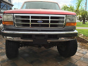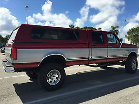 Beautiful red and grey 1997 Ford F-350 4x4 Crew Cab 7.3L Diesel Pickup Truck. Body and paint is excellent. Lift kit installed, new tires and wheels, and Skyjacker shocks. Original wheels included. Ice cold Air-conditioning. Matching red bed cap and spray-in bed liner. Pioneer DEH-X65BT radio/cd player with i-pod/Bluetooth/USB capability and 100 watt amplifier and subwoofer installed behind rear seat. Interior is very clean and seats have been recovered with leather. There is also a DVD monitor overhead but needs the player. Three gauge Autometer cluster on the A-post for transmission temp, pyrometer, and boost. Additional equipment/features are a front end receiver, an incredibly loud train horn, sliding rear window, a trailer brake controller and a full length nerf bar. Truck runs and drives great. No surprises and it gets lots of compliments.