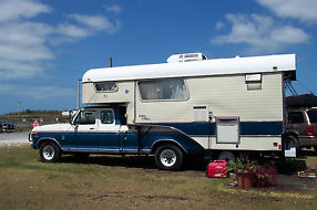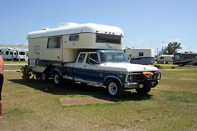 Vintage 1975 Ford F-350 with Extended Club cab Born Free Camper Special