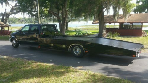 1999 Ford F350 Hodges Car Hauler, Second owner, purchased 1 year ago, original Florida truck, V10 Gas motor, Automatic RWD. Drives great 12MPG loaded coming back from Florida at 75 miles per hour. New BF Goodrich commercial radials. Loaded cab with leather, cd, power captain chair, ps, pb, pw, pl, ice cold air, tilt, cruise, factory limo tint rear side glass. $11,000 Hodges conversion includes extra long 19' diamond plate bed and ramps, bed loading lights, roll bar with lights, raised sides and cut corners, hitch,heavy duty pierce winch with remote, huge extra tool box, extra D rings, etc. this truck is ready to haul anywhere. 97,000 miles. Sold "As Is" No Warranty. I don't have to sell this truck just thinking of getting newer Hodges car hauler.