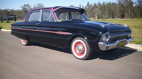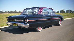 hi there this is a 1962 xl falcon futura 4 door it has had a full bare metal respray with all the rust repairs done correctly with photos of all stages of respray it has been done in black two pac inside and out the top has been done in custom candy red with lace work fades and crystal effect it looks awsome .the car has 2 frenched arials fitted into the right hand gaurd and has a pair of one off hand built rear spats the tail light surounds have been extended .it has a very strong 170 cubic inch pursuit engine fitted with extractors a three speed auto gear box with columbe change .it has front bucket seats the interier is neat but could do with some new door trims as these are still original ones and retractable seat belts in front with lap sash fitted in rear has a cd mounted in glove box all up this is a cool car that looks awsome and drives great and not out of place at any car show it is a one off regoed till 19/11/2015 has great tyres with white wall flappers all round the car can be veiwed in medowie nsw 2318 just call 0409206351 it is pick up only but i will help with any pick ups if you arange it