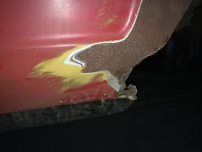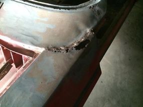 It is a bare shell with front guards. Not a bolt or screw or extra part on it. Has rust in both front floorpans where they meet the sill, LHR guard where it meets the sill, LH front sill end is a bit see through behind guard, front cowls have a few tack welds where the guards meet, minor in cowls, front guards have small spots rust, lhr c pillar minor rust at rear, minor spots in boot floor, minor inside rear qtrs,, Where exhaust hangers bolt both are cracked. Minor stuff in rear beaver, minor spots elsewhere. Nothing major in sills. Good, roof, baileys, pillars, firewall, support panel, hump. floor under rear seat, front stonetray. rear channel under rear window, window surrounds, dash frame. Still has V6 radiator support and battery box in place.