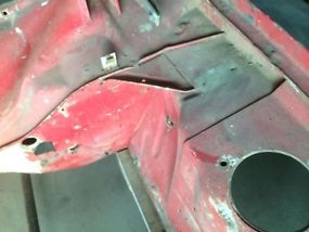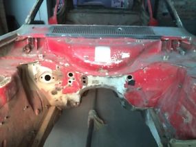 2nd shell has cuts in front floor, rear c pillar, boot bits and more that will aid in the resto of the V6 shell. it is an incomplete shell that is tagged and numbered a V6 gt auto but is plainly a 4 cyl. No a pillar or battery box and support panel modified. Has a V8 modified front.crossmember and V6 strut towers