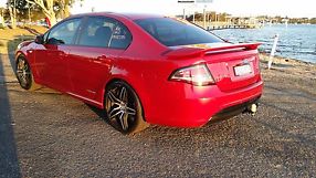 Equipped with ABS brakes, brake assist, 2nd row split folding seats andfront/rear cup holders. This car has sports instruments, sports pedals,map/reading lamps, limited slip diff (LSD) and driver & passengerairbags. Leather multifunction steering wheel and gear shift, park brake. Original XR6floor mats. Factory tinted windows, drivers side weather shield. Cruisecontrol, electric seats and windows, single zone a/c or climate control, key less remote, 2nd key/remote available new/unused, central locking andengine immobilizer. Prestige Seduce Red metallic paint, brand new original Ford frontshocks, upgraded brakes, chrome tipped exhaust and front fog lamps.Rear parking sensors fitted. New battery.