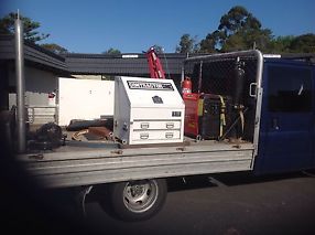 Sold as is with top quality tool boxes with all gear for repairs & maintainence.(Drills, grinder, welder, leads, turfer, ratchet straps, tools etc) 8kva diesel generator remote start, gas bottle, fire extinguisher, crane, dawn vice. All gear on back is quick release demountable for carrying large load. Tow bar.