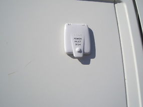 does have power plug on the outside drivers side just like a caravan and power plug in points inside on each side aswell as a light switch was going to do it up for camping