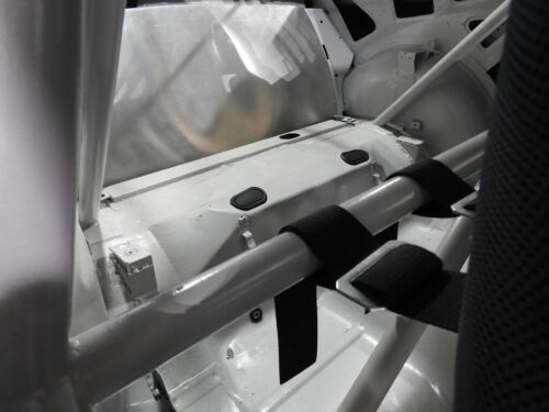 The interior has two Kirkey Racing Fabrication seats that are equipped with Joes Racing Products five-point harnesses. Stripped of stock equipment aside from the dash top and door panels. Adding in A Superior Performance Products Three-Spoke Steering Wheel, framing a Jones Tachometer, accompanied by a Suite of Stewart Warner Gauges to monitor fuel pressure, coolant temperature, oil pressure, and oil temperature. Additional gauges for vacuum level and battery status are fitted within the center of the dash. A four-digit mechanical hour meter shows approximately 4 hours of usage. Topped off with a fire extinguisher that is joined by ignition, and cut-off switches mounted on the transmission tunnel.