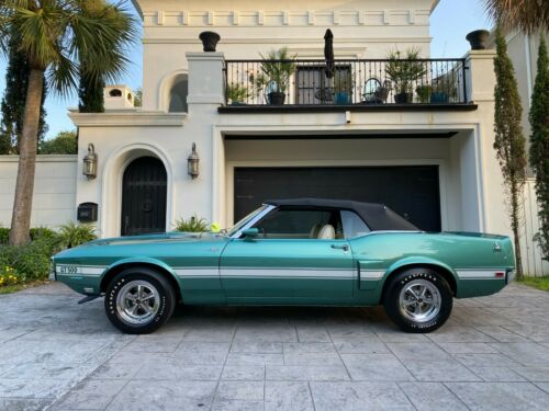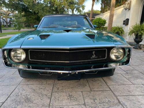 1969 Shelby GT500 Mustang Convertible, 428 Cobra Jet engine (correct block) (completely rebuilt-with receipts/photo evidence) automatic transmission (correct Transmission (does not have the R code servo)) car has the correct paint, correct rear end (not correct date code) correct "S-Tube" - Heat shield and Snorkle, correct Carburetor, Correct Intake-heads and exhaust for 428CJ (dates not known for heads or exhaust) Correct "Ford" script glass and headlights, original Sheetmetal, Correct "spare" and canister, correct radio, correct steering wheel, correct Top, correct belts/hoses, Multiple records of rebuild work, Deluxe Marti Report comes with the car, Large number of Shelby Registry records, This car's original individual order sheet (3907) is dated 6/23/69, its original Shelby Automotive Co. Inc Invoice #04596 dated 6/24/69 and its original Pre-Delivery service sheet dated 6/15/69, additionally it comes with dated receipts going back to 1/10/1997 (in the form of a Texas Title) This car is in #1 condition! it was completely restored during the period of 2006-2009 including a rebuild of major components , repaint to the original Silver-Jade Color together with the engine & Transmission having been completely gone through! at the time of this work, photo evidence shows the car as having 57274 miles on 8/1/2007. today the car carries an odometer reading of 57467 miles and the condition of the undercarriage post the 2006-2009 restoration is a testimony to the fact that there really have been only about 200 miles on the car since restoration, the car carries a 2 inch thick binder and multiple photos of the 2006-2009 restoration showing the motor & transmission being pulled, the vehicle being stripped to bare metal and all necessary repairs being properly executed, receipts for the restorations are extensive! normally this far distanced in time these phots and records would not be relevant facts however given that the car has been driven so sparingly and the condition of the car is so close to the restored condition- all of these items are important!