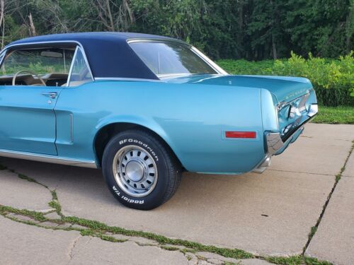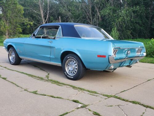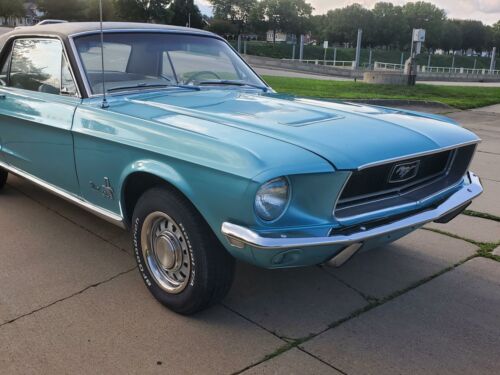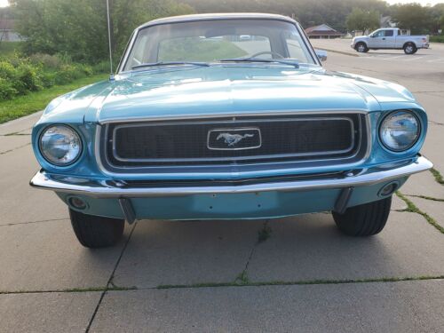 Check out this beautiful original 68 Mustang Coup.The mileage reads 59654 and the prior owner said that it is correct but he since passed away and I have no way to validate this.The color is Tahoe Turquoise Metallic with parchment interior and a black vinyl top.The paint, top and interior look like brand new.The driver’s seat and the headliner have very small holes in each of them.The 289 2 barrel engine and the automatic transmission work excellent.It has a brand new complete dual exhaust system as you can see in the pictures.The underneath photos show the original primer and a rare feature – absolutely no rust.This is an exceptional Ford Mustang, and it is a rare coupe…not only because of the mileage, but the color combination and the condition are both exceptional.Call Dave on his cell 563-880-0578.Shipping available.