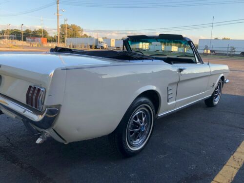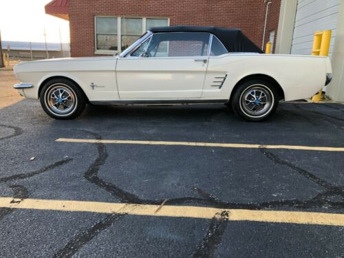 1966 Ford Mustang convertible comes in a beautiful White with a Blue interior. equipped with a 200 c.i engine as well as a C4 automatic transmission comes with upgraded 4 wheel disc brakes which helps with handling and stopping power. Rear coil over springs and shocks. A new convertible top was installed. A nice interior, new updated radio and speakers. New dash pad, new door panels, new carpet, all interior chrome has been replaced and is in nice shape. The paint is also in nice driver quality very straight and looks very nice only a few minor chips from recent use, but still very presentable. The undercarriage is in good shape nice sheet metal. Excellent frame rails and torque boxes. New front and rear bumpers as well as all other chrome accessories. New exhaust as well as all new exterior chrome and all new rubbers were installed in the past year. New gas tank and fuel lines all new front and rear shocks and suspension as well as new tires and Gt styled steel hubcaps. Brakes were also redone with new brake lines. If you are looking for a great mustang that has had a ton of money invested that has a great color combination which looks good and ready for daily use this is the one. Once again this is a very nice car its not perfect, but a great car for someone to enjoy daily.