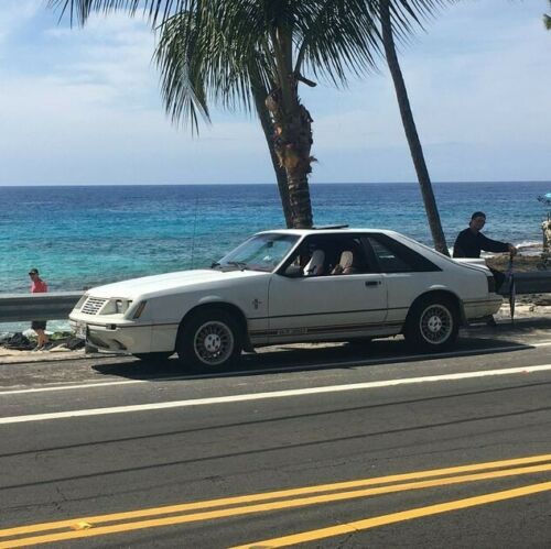 1984 Ford Mustang GT 350, white car with red interior. Sunroof. Rebuilt 302/5.0 with 5-speed manual transmission and Traction-Loc differential. Believe the rear is a 3.55, I measured it once but forgot what it was--factory was 3.08 but believe me, it is NOT that. Car launches too well.