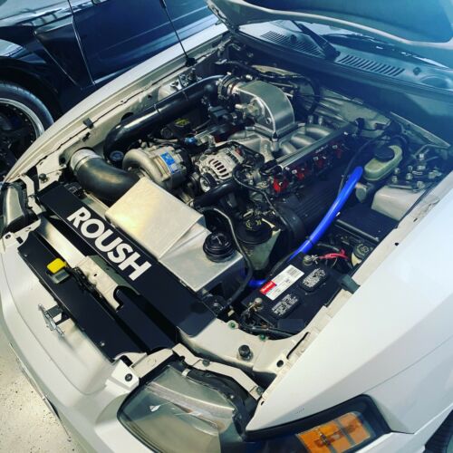 Authentic Ford Mustang Roush Stage 2New DSS built motor. Picture of the build sheet with pics. Has a boss block, lunati 8 bolt crank, forged pistons and rods, bored from a 4.6 to a 5.3, trick flow 44cc heads, Anderson cams. T56 with upgraded 26 spline input shaft, upgraded clutch, new built rear end, 31 spline moser axles, 3.55 gears, aluminum driveshaft, full coil over suspension(Viking), maximum Motorsport tubular k member and control arms, kooks long tube headers, kooks catted x pipe, original Roush side exhaust(sounds amazing) cobra fuel tank, fore innovations return style fuel system 8an fuel feed and 10an return, dual fuel pumps, corbaeu seats(very snug and comfy), new tires, new 14” rotors and brake pads, Roush 4 piston calipers, vortech v2 blower, front mounted inter cooler.