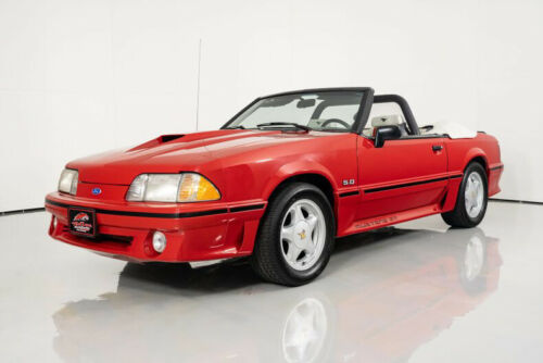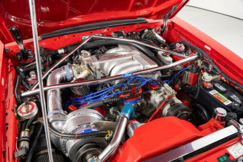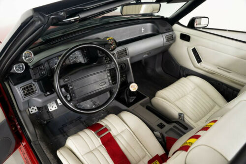 This 1993 Ford Mustang GT for sale has a Supercharged 5.0 Liter V8, 433 Horsepower, 5 Speed Manual Transmission, 3.37 Rear Ratio with Traction Lok, Red Exterior with White Convertible Top, White Leather Interior, Power Windows, Locks and Seats, AC, AM/FM/Cassette, Custom Gauges, Power Top, Paxton Supercharger Runs 6 LBS of Boost, Supercharger Oil Cooler, GT Upper and Lower Intake Manifold, Twisted Wedge Heads, Crane Roller Rockers, Crane Comp Cam, Upgraded Ignition and Cooling System, Headers and Dual Exhaust with H Pipe, Sub Frame Connectors and Strut Tower Brace, Aftermarket Roll Bar, Cervini Hood, Factory Shoulder Belts as well as Driver's Side 5 Point Harness, Built 5.0 Foxbody with all the Right Mods!