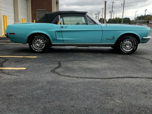 1968 Ford Mustang convertible Turquoise with a black interior comes with a fully rebuilt 289 c.i engine along with a fully rebuilt C4 automatic transmission. This car is fully loaded with a power convertible top with folding glass. Upgraded power steering, new power disc brakes which includes new power brake booster and master cylinder, new brake hoses, brake lines, new rotors and calipers. This car has had an extensive mechanical and cosmetic restoration. The car has an upgraded front suspension, new power steering system. New front and rear shocks. New fuel tank and lines. New Gt wheels and tires and new GT exhaust. The car has new interior upholstery which includes,new carpet, seats and foam. As well as a deluxe style center console. The Mustang runs and drives very well. The car is very solid. You will not find too many mustangs with such a nice rust free undercarriage and solid original body panels. The paint on the car is in good shape, has chips and scratches, but overall shows well. Once again this is a very nice car not a show car or trailer queen, but a car that someone can drive and enjoy and not worry about small rock chips. If your looking for a well maintained car that has had a ton of work done lately this is it.
